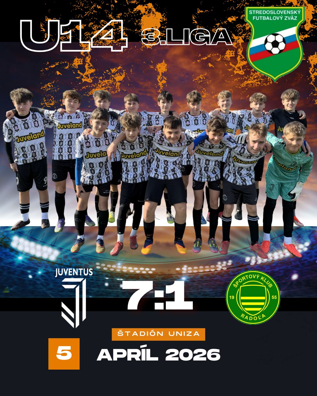 Zhodnotenie zápasu trénerom D. Kováčikom: "Prvých 5 minút zápasu boli chlapci mysľou už asi na šibačke :-). Súper na nás vybehol a z troch tutových gólových šancí jednu aj premenil. To nás asi naštartovalo začali sme sa orientovať, že hráme majstrovský zápas a postupne sme preberali hru do svojich rúk. Strelecké kopačky si dnes obul Šimon Výboch autor 4 gólov, ale samozrejme podiel na nich mali všetci chlapci na ihrisku. Dnes sme videli pekné individuálne výkony okorenené peknými prienikovými prihrávkami. V závere zápasu tempo hry upadlo a najmä striedajúci hráči nevyvinuli taký tlak na súpera, aký sa od nich očakával, čo mohlo priniesť aj vytúženú desiatku. Ďakujem všetkým chalanom za predvedené výkony a verím, že sa im v pondelok dobre "šibalo" :-)"
