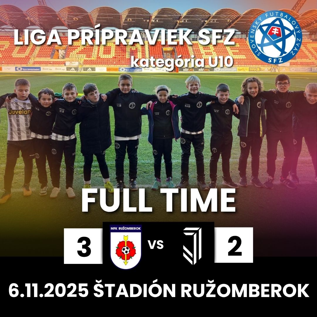 Zhodnotenie zápasu trénermi P. Korečkom a P. Funtíkom: "Chlapci a Maťa proti kvalitnému súperovi v chladnom počasí a na veľkom ihrisku sa predviedli dobrom svetle. Hra sa odvíjala na oboch stranách ihriska vo vysokom tempe. Chlapci sa sami pýtali dole, išli na doraz. Chýbal nám iba kúsok, aby sme si priniesli lepší výsledok z Ružomberka. Takýto zápas proti kvalitnému súperovi, chlapci aj my tréneri potrebujeme k svojmu rozvoju, aby sme napredovali. Na záver chceme poďakovať rodičom a fanúšikom za povzbudzovanie."
