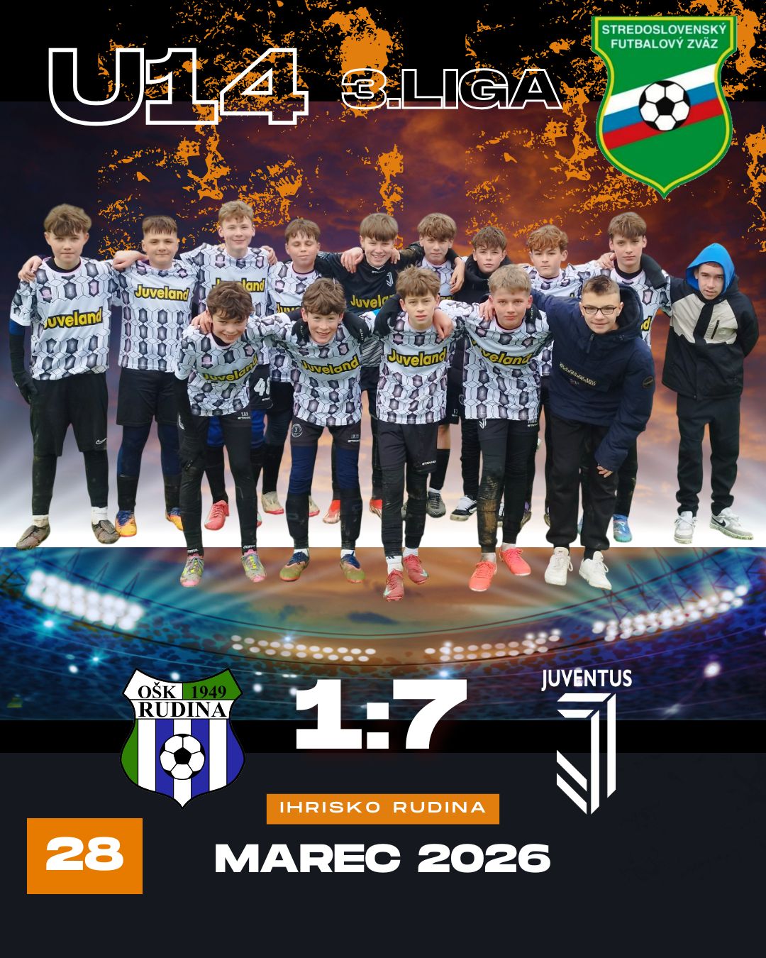 Sedem gólov sa podarilo chlapcom z U14 nastrieľať do siete domácej Rudiny. Základom dobrého výsledku bol kvalitný výkon celého družstva od prvej minúty až do konca zápasu
