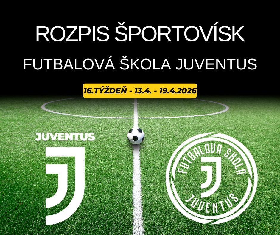 ROZPIS ŠPORTOVÍSK FUTBALOVÁ ŠKOLA JUVENTUS 16.TÝŽDEŇ OD 13.4. DO 19.4.2026