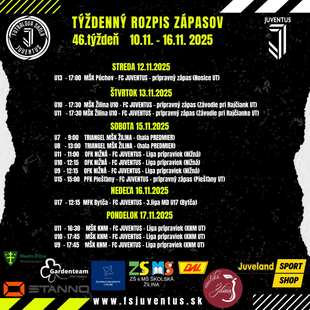 ROZPIS ZÁPASOV NA AKTUÁLNY TÝŽDEŇ 46.TÝŽDEŇ od 10.11. do 16.11.2025
