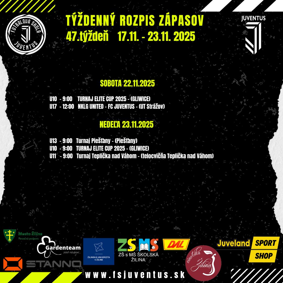 ROZPIS ZÁPASOV NA AKTUÁLNY TÝŽDEŇ 47.TÝŽDEŇ od 17.11. do 23.11.2025